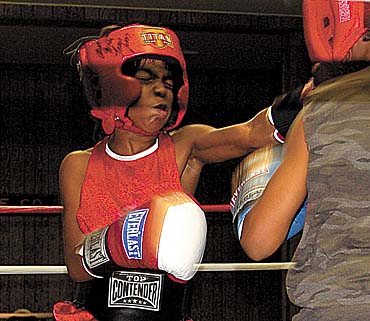 It quickly became apparent that Santos wasn't hearing the words of his trainer. He was searching for a knockout blow, with somewhat wild overhand hooks that were missing the target. Since knockouts are very rare in amateur boxing � where the gloves are made to absorb energy, and fighters wear protective head gear � this is not a productive strategy. In amateur boxing, fighters win by scoring points, landing punches in the right places.
